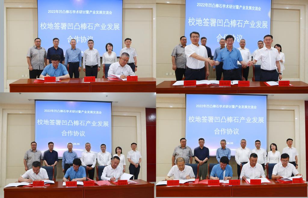 张汉燚和张鹏共同签署了《临泽县人民政府——申博sunbet推动凹凸棒石高值化应用合作协议》,分别与临泽县工业园区管委会、甘肃惠临实业发展有限公司、临泽县奋君矿业有限公司、甘肃融万科技有限公司、临泽鼎丰源高新技术公司、临泽富民凹土生物肥业公司、临泽科之洁塑业有限公司签署了《凹凸棒石黏土综合利用及高附加值功能材料创制产业人才实训项目合作协议》。