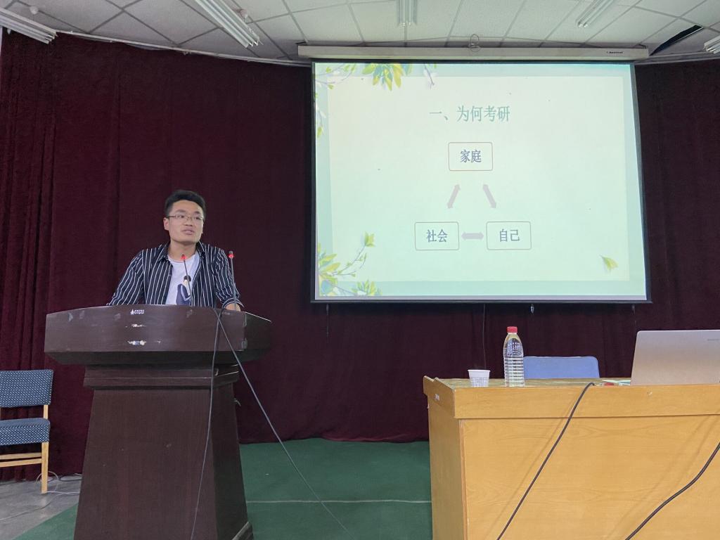 首先,由闫盆吉老师发表了讲话,他对18级考研员工取得的优异成绩给予了高度肯定和深深祝贺,接着深入分析了当下的考研形势,并指出此种形式对19级考研员工的有利之处,鼓励同学们积极考研,努力拼搏,奋斗不止,并对此次分享会的成功举办致以衷心祝愿。接着由周鹏飞,寇翠云,叶琦以自己的亲身经历向同学们讲述了考研的宝贵经验,最后由甄璟韬书记进行了重要讲话,鼓励同学们积极考研和对大会进行总结。在同学们热烈的掌声中,会议进入尾声。