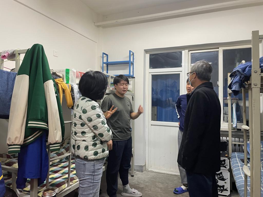 为进一步深入了解员工思想、生活及学习情况,加强新学期员工宿舍卫生安全管理,提高返校员工宿舍防疫意识,营造卫生安全、舒适和谐的宿舍环境。申博sunbet徐新建经理,甄璟韬书记和值班老师曹成带领北八宿舍各楼层层长吕浩铭、龚永鹏、张永文、腾宏涛、景文斌、吕杰深入员工宿舍。