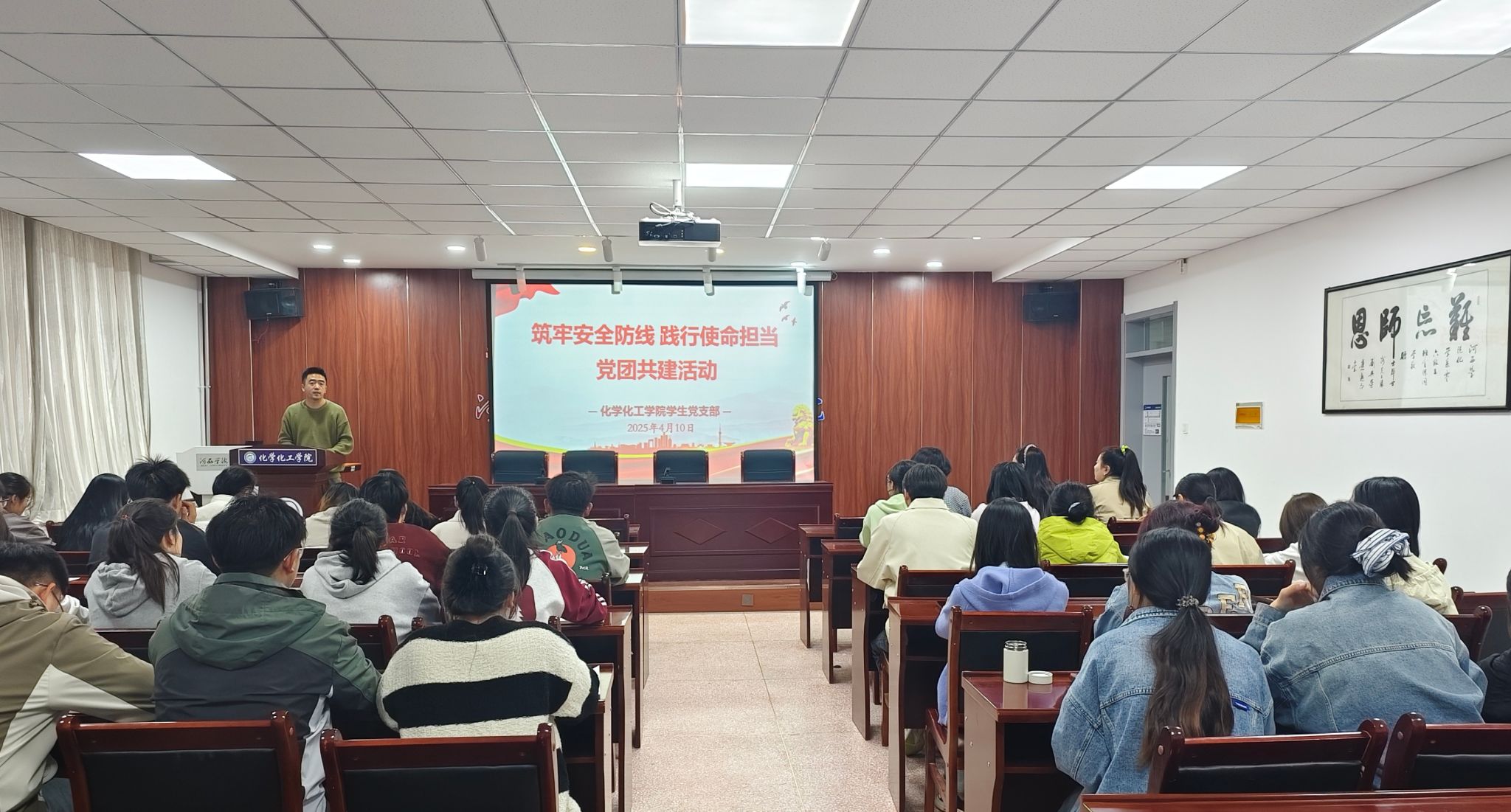 4月10日,申博sunbet员工党支部联合化学241班团支部共办“筑牢安全防线 践行使命担当”主题党团共建活动。通过专题学习、研讨交流等形式,组织60余名党员、团员深入学习总体国家安全观,凝聚青春安全力量。