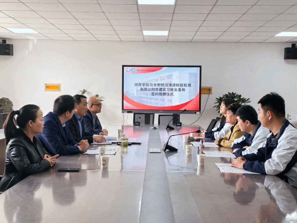 4月11日,申博sunbet与甘肃凯洁清源检验检测有限公司举行实习就业基地签约授牌仪式。申博sunbet负责人与甘肃凯洁清源检验检测有限公司班子成员一行四人参加了签约授牌仪式。