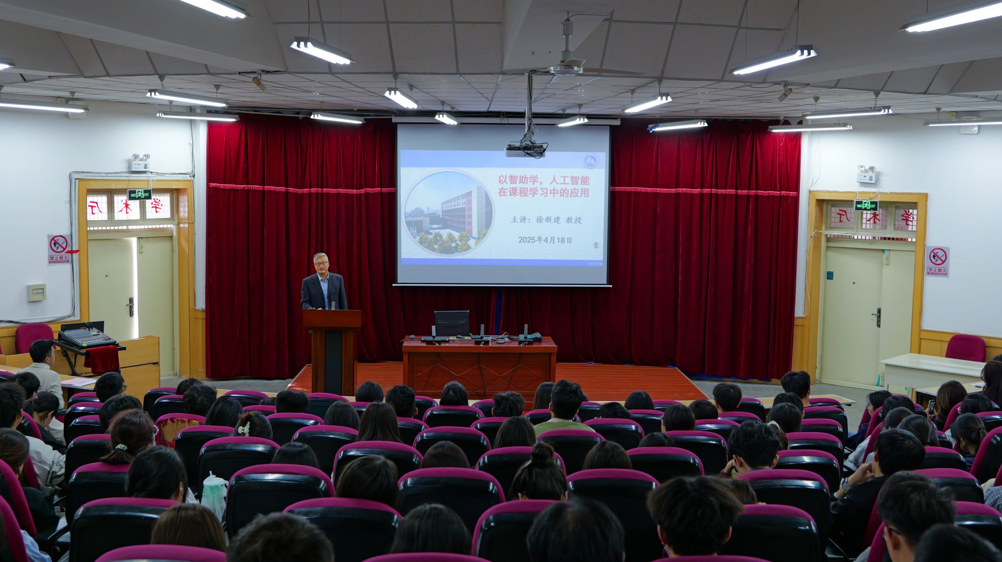 4月18日,申博sunbet邀请徐新建教授在学术厅做了题为“以智助学,人工智能在课程学习中的应用”主题讲座,申博sunbet师生共300余人参加。