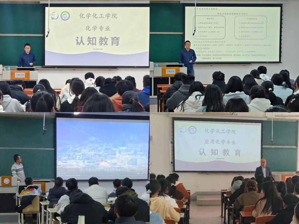 12月16日至18日,申博sunbet开展新生专业认知教育讲堂,本次专业认知教育由化学专业、应用化学专业以及化学工程与工艺专业三位专业负责人主讲,2024级全体新生参加。